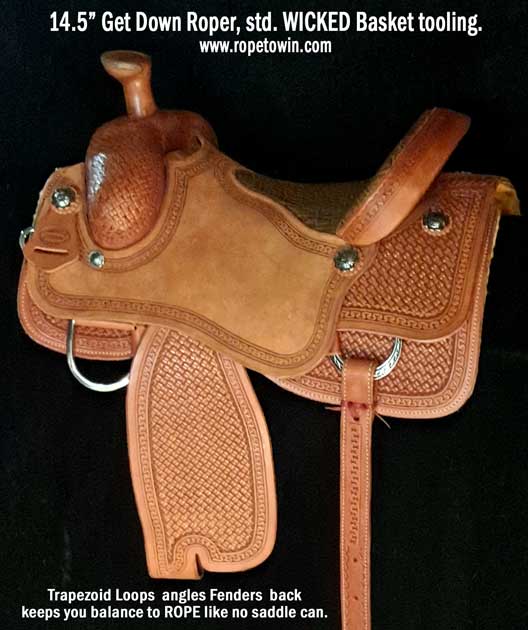 Includes: Made of heavy smooth or rough-out saddle skirting. The 7.75" tree gullet gets a hold of your horse. This fork is low but doesn't hit withers with the No Pinch Twist Bars in this saddle. The Brass DM-8 horn as shown is std. Border or Wicked Basket Tooling is standard. Legs under Trapezoid stirrup LOOPS are std. Natural-Fit Breast-collar is extra. 6" Flank Cinch is Std. The 50% Deposit shown SCHEDULES YOUR SADDLE, Call LEN TO FINISH THE ORDER & DETAILS ON YOUR SADDLE. Save $100 on a PROTECTOR PAD with the PURCHASE of a saddle.